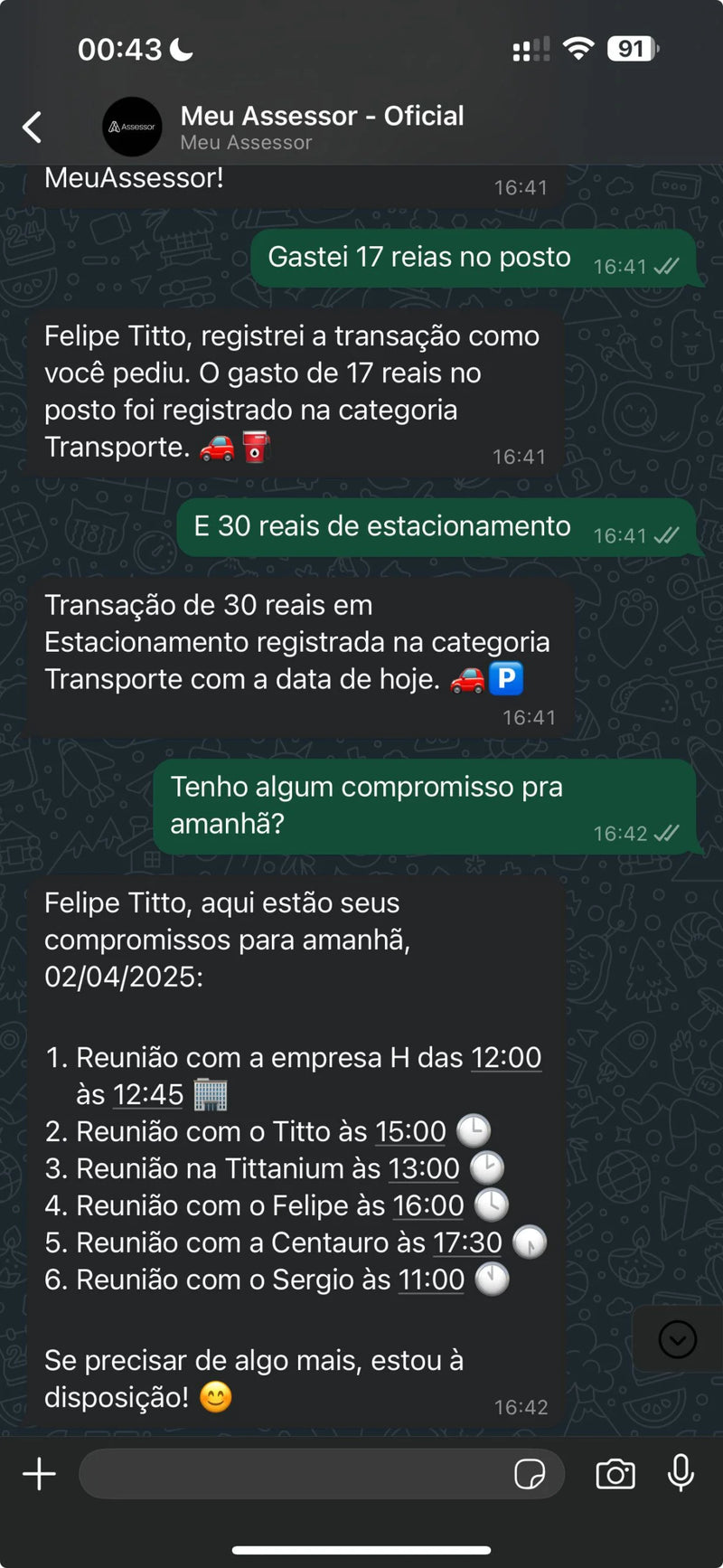 O MeuEstagiário resolve isso: organização financeira e gestão de compromissos, tudo de forma simples e direta pelo WhatsApp.