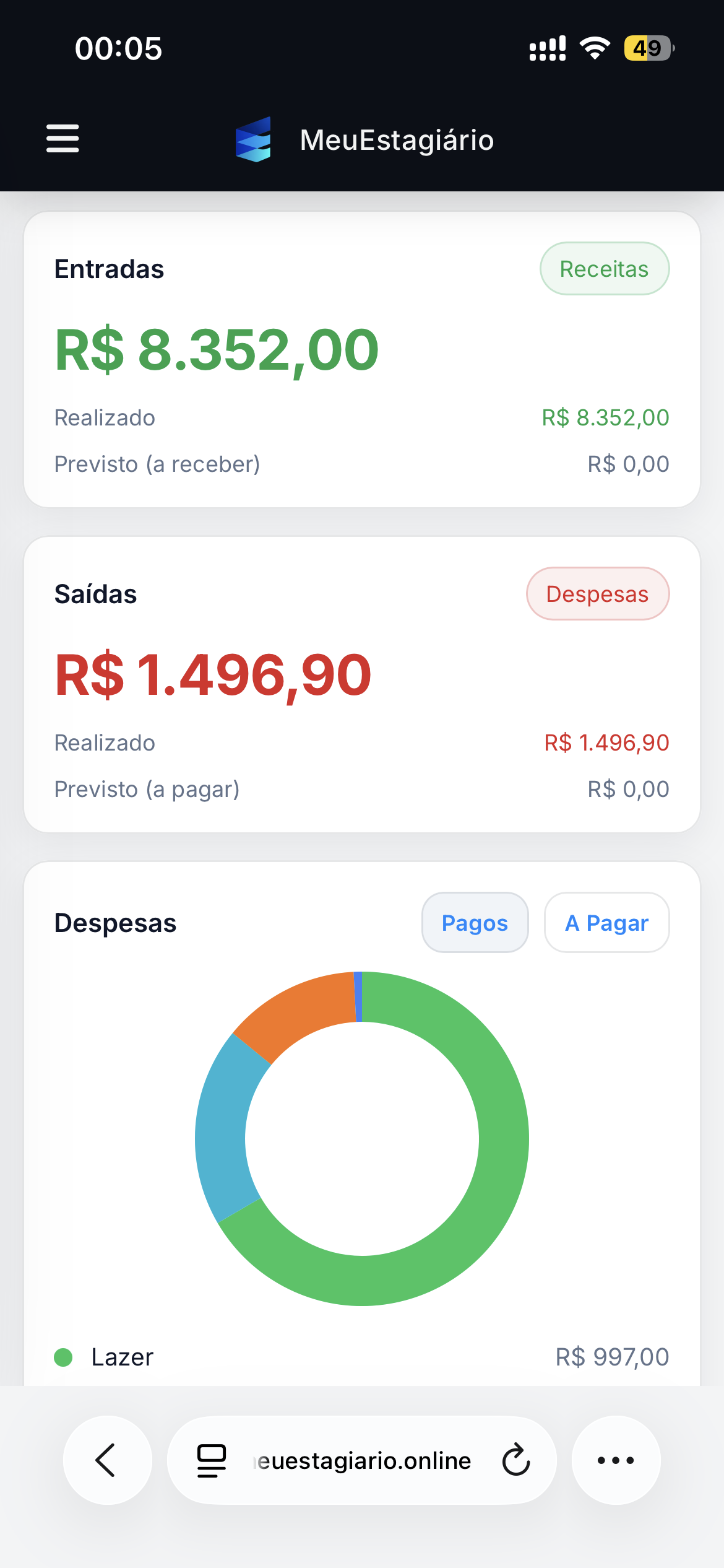 MeuEstagiário controla suas finanças direto no WhatsApp.